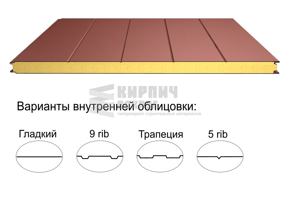 В интернет-магазине "Кирпич Вокруг" Вы можете купить Стеновая трёхслойная сэндвич-панель 5 rib 100мм 1000мм с видимым креплением минеральная вата Полиэстер Доборник в Ижевске, а наши специалисты готовы вам помочь с выбором по адресу: , или оказать консультацию по телефону: .